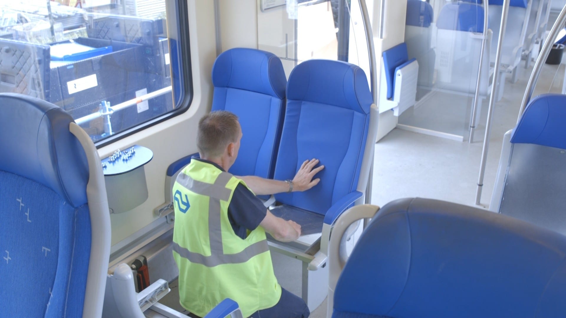 In Utrecht wordt dagelijks één trein voorzien van nieuwe bekleding. De vernieuwde treinen vallen in de smaak. Volgens NS waardeert slechts 6% van de reizigers de trein met een cijfer lager dan een 7. Dat was eerst 17%.