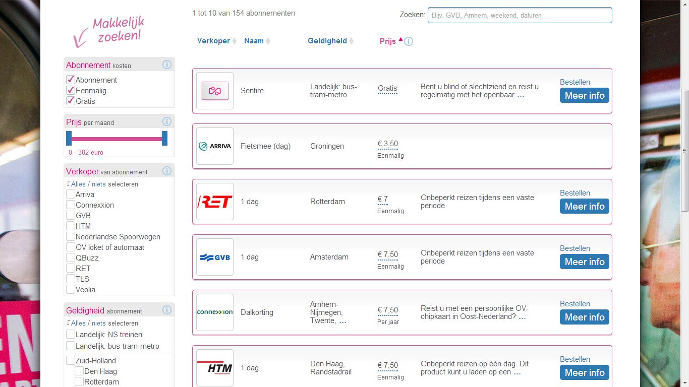 Voor het eerst zijn alle OV-chipkaart-abonnementen van Nederland overzichtelijk te vinden op één website: ovchipkaartabonnement.nl. Op deze website kan de reiziger per regio en per vervoerder zien welke abonnementen er zijn. In totaal zijn er 163 abonnementen op de website opgenomen.