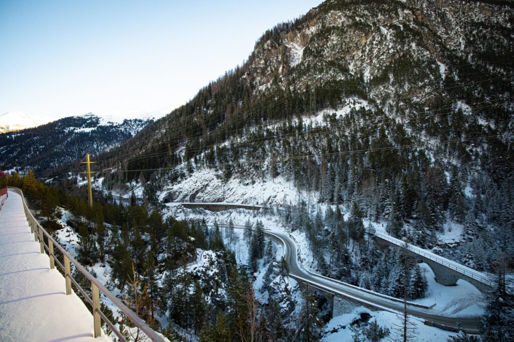 Maar: de volledige route is niet altijd wit. Dalen zoals rond Poschiavo en Tirano liggen lager en zijn vaak sneeuwvrij. De afwisseling maakt de reis extra bijzonder: van kale dalen tot hoogalpien winterlandschap binnen één uur tijd.