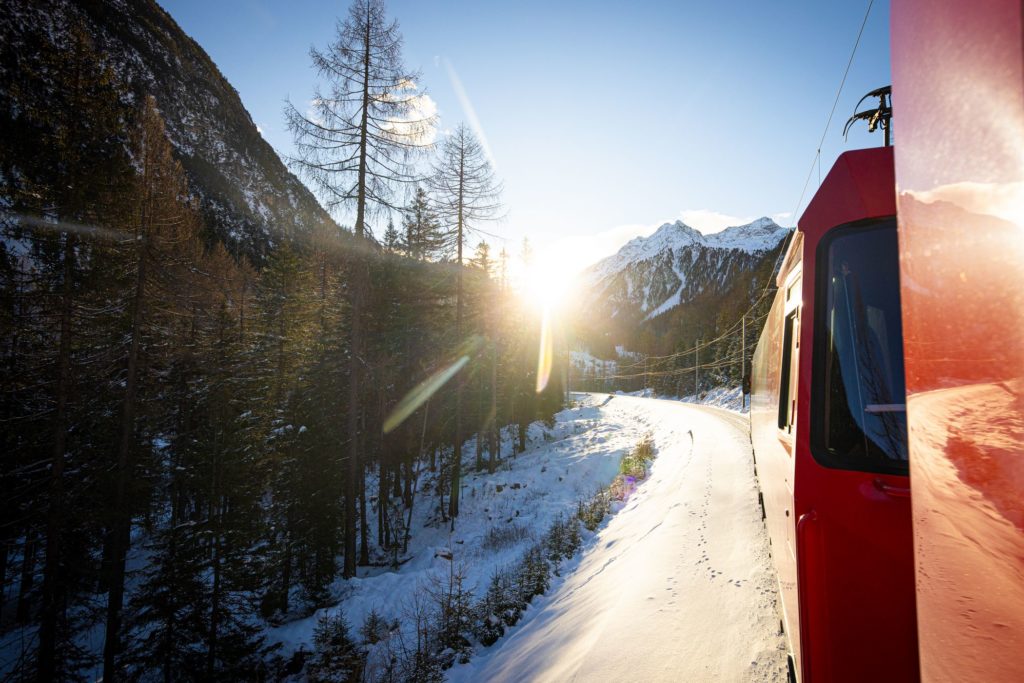 In de winter rijdt de directe Bernina Express slechts één keer per dag vanuit Chur. Voor deze panoramatrein is een toeslag/reservering verplicht. De grote ramen geven een bijzondere ervaring, maar wie flexibel wil blijven, kan net zo goed gebruikmaken van de reguliere RhB-treinen – dezelfde route, zonder toeslag, met nagenoeg elk uur een verbinding.