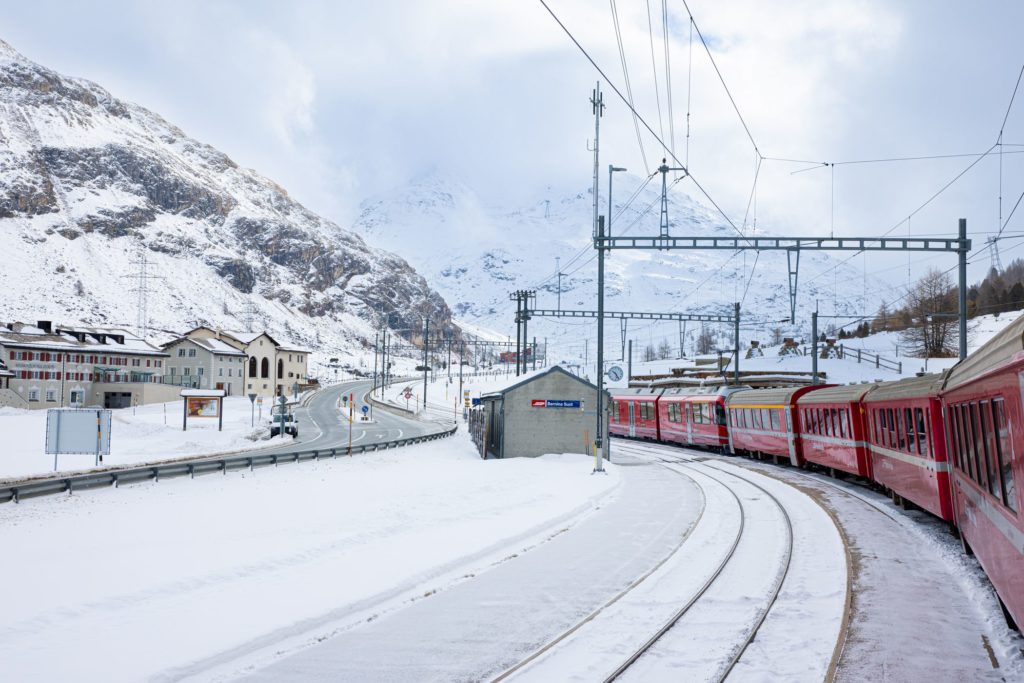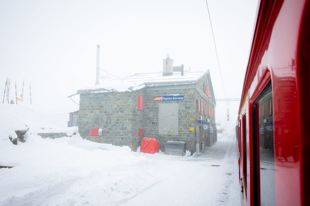 Een van de mooiste winterstopplaatsen is Alp Grüm. Dit bergstation ligt op 2.091 meter hoogte en biedt uitzicht op de gletsjers en het Poschiavo-dal.