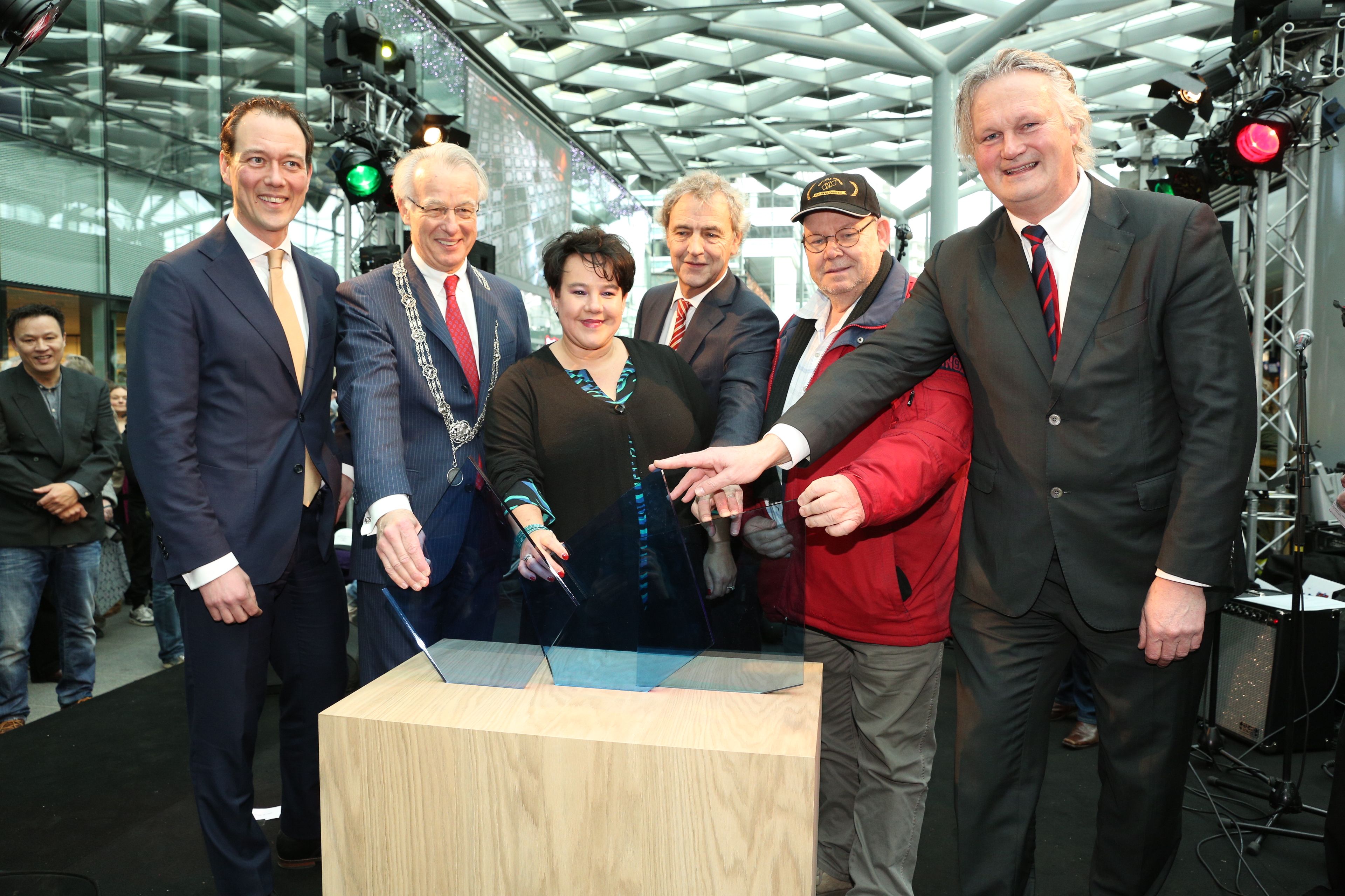 De reiziger die Den Haag Centraal mocht openen. Hij wist als enige alle vragen van een quiz goed te beantwoorden. Foto: ProRail/Stefan Verkerk