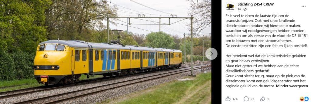 De hoge brandstofprijzen van dit moment inspireerde de Stichting Crew 24/54 tot de verzonnen ombouw van diesel museumtrein Plan U 151 met een stroomafnemer en inbouw van een geluidsgenerator voor het behoud van het authentieke motorgeluid.
