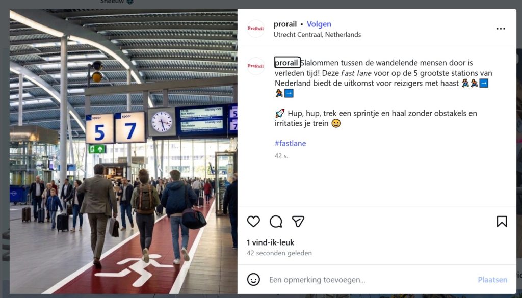 Spoorbeheerder ProRail verzon de invoering van een ‘fast lane’ op de 5 grootste stations van het land voor reizigers met grote haast.