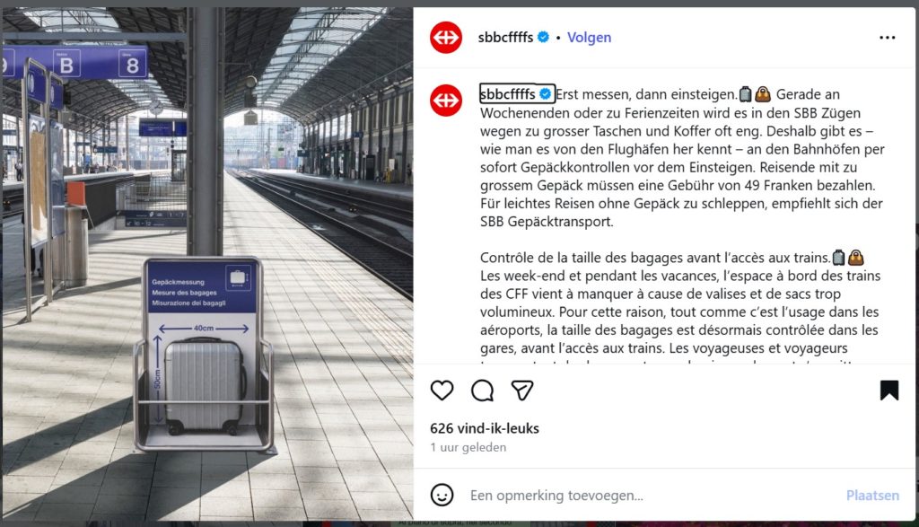 In andere grappen komt de Zwitserse spoorwegmaatschappij SBB in navolging van de luchtvaart met het plan voor beperkingen voor handbagage en introduceert het Oostenrijkse WestBahn verplicht het gebruik van sloffen in de eerste klasse.