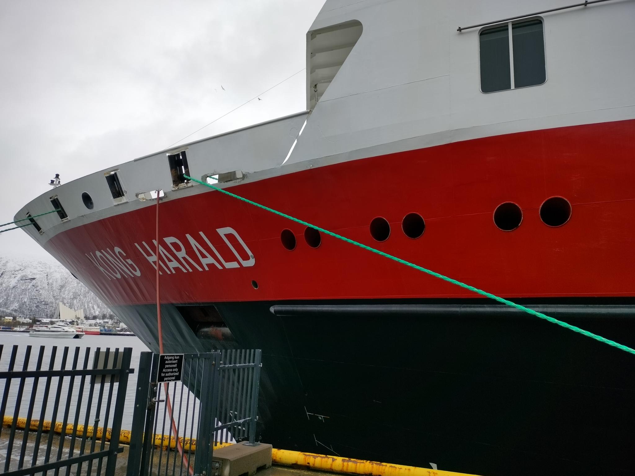 Maar de 34 havens liggen vast. Niet meer stoppen in Torvik omdat er nooit iets gebeurt staat niet ter discussie. Zo houden plaatsen als Torvik deze belangrijke verbinding. En de reiziger? Die strekt zich nog eens lekker uit in de lounge, leest een boek, breit of mijmert wat. Over een uur leggen we aan in Tromsø, voorlopig moet er niks.
