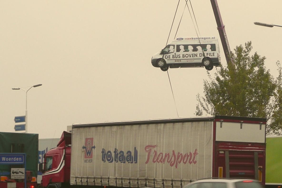 (c) ANP / Treinreiziger.nl. Foto: De bus gaat boven de file (archief)