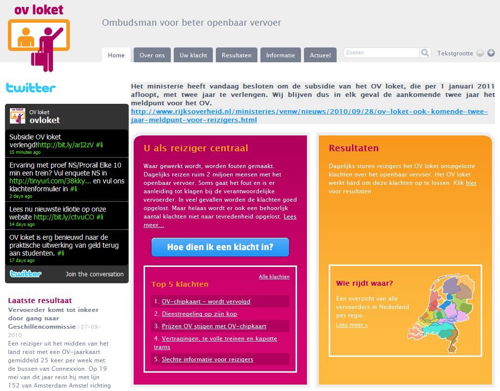 De subsidie voor klachtenwebsite ov-loket.nl wordt met twee jaar verlengd. Dat heeft minister van Verkeer en Waterstaat Camiel Eurlings (CDA) bepaalt. Op deze website, die sinds september 2008 bestaat, kunnen reizigers terecht met klachten en vragen over het openbaar vervoer.