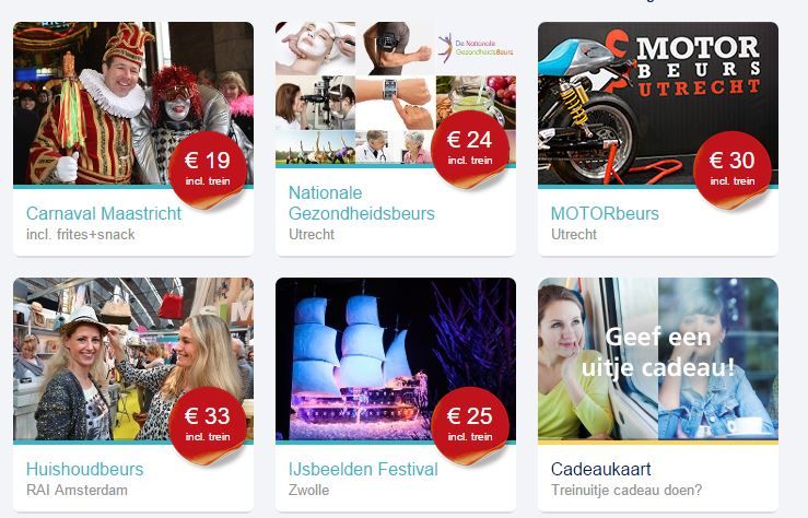 Motorbeurs, Huishoudbeurs, Gezondheidsbeurs of Taste of Holland Jaarbeurs? Dan zijn er voordelige aanbiedingen voor je, waarbij niet alleen de trein maar ook de beurstoegang is inbegrepen.