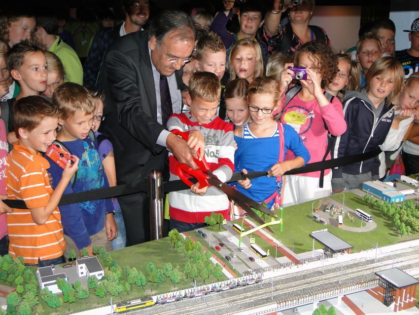 De mini-Hanzelijn werd donderdag geopend door de directeur Projecten van ProRail, Patrick Buck en directeur Miniworld Rotterdam. Ook de kinderen Marc van Buren, samen met Emma Folbert (10 jaar, uit Zwolle), Jonathan Schilder (8 jaar, uit Kampen), Wilco Reitsema (9 jaar, uit Dronten) en Valérie Musch (10 jaar, uit Lelystad) mochten met de directeuren de lintjes doorknippen.