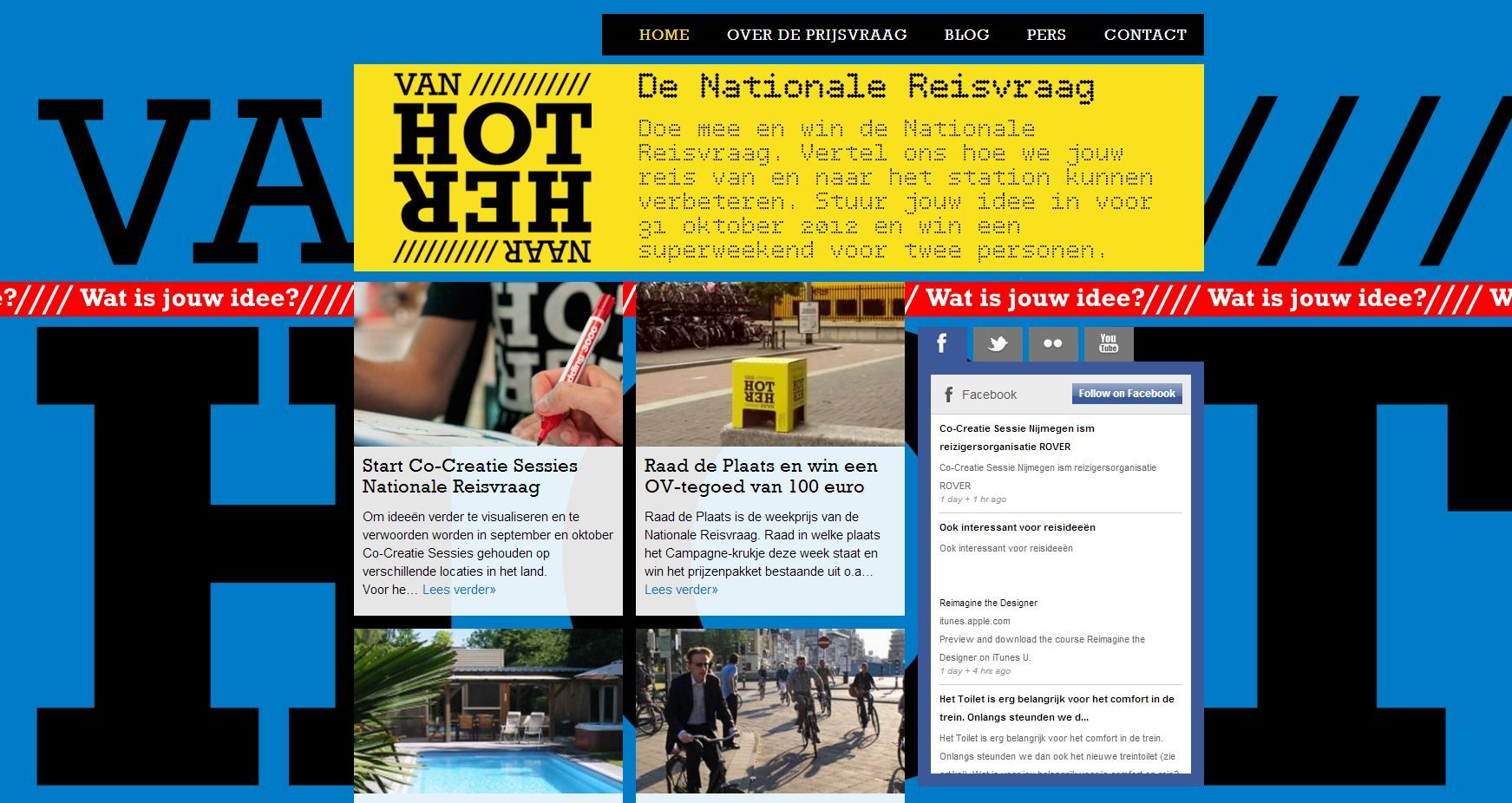 De Nationale Reisvraag is op zoek naar ideeën om de reis van en naar het station te verbeteren. Tot en met 31 oktober kunnen treinreizigers een idee indienen en meedingen naar een weekend weg voor twee personen. In de Nationale Reisvraag word je uitgedaagd om een originele oplossing te bedenken om de reis van en naar het station prettiger te laten verlopen. De prijsvraag is een initiatief van Agentschap NL in opdracht van het ministerie van Infrastructuur en Milieu.