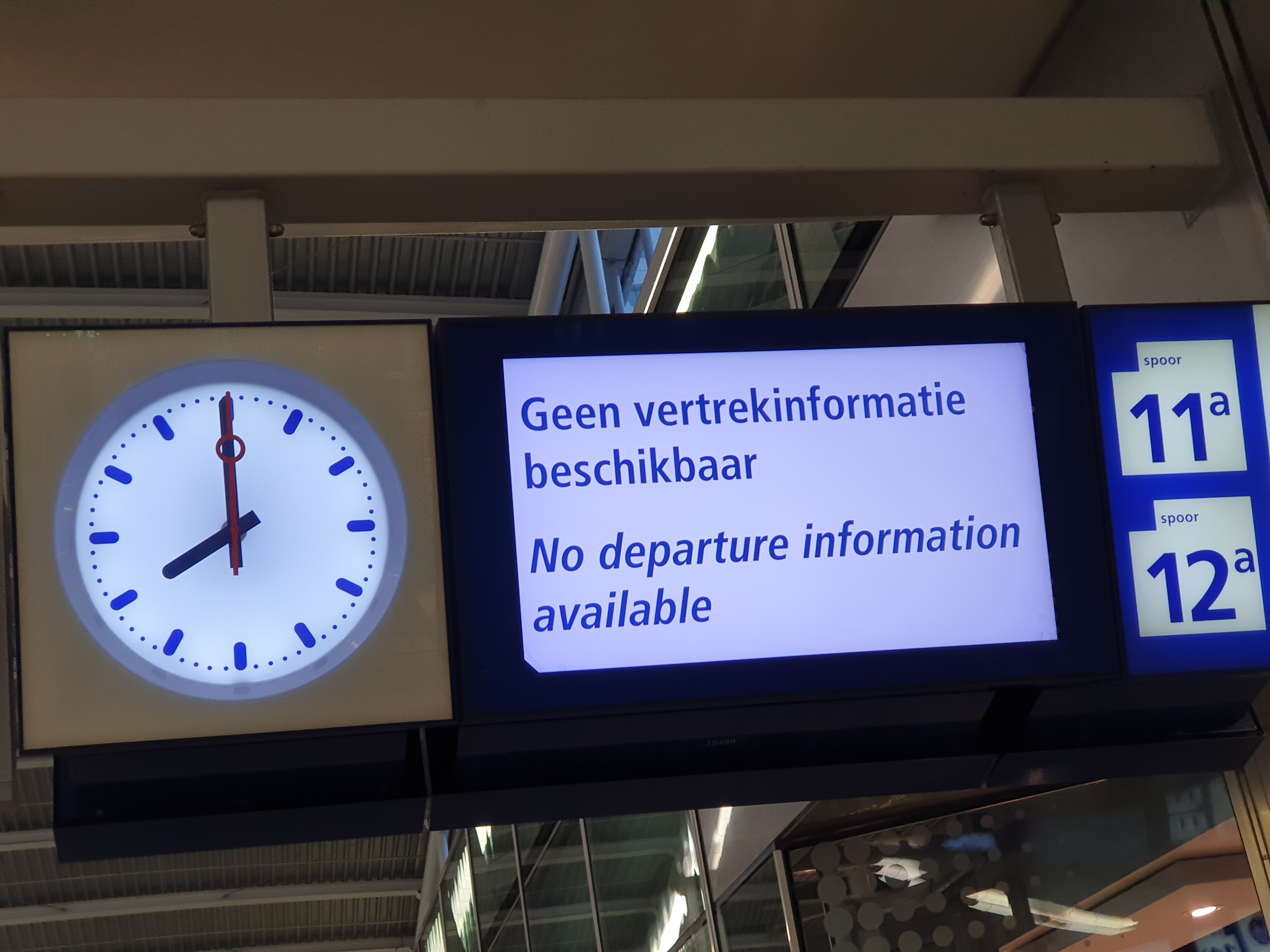 “Wij adviseren om je treinreis met NS uit te stellen, of als je onderweg bent, naar andere reisopties te zoeken. De reisadviezen in de reisplanner bevatten geen vertragingen of uitgevallen treinen. Op de stations kunnen we zelfs geen enkele informatie geven. We werken hard aan herstel, maar helaas is nu nog niet te zeggen hoe lang deze situatie zal duren” meldde NS in eerste instantie op haar website.