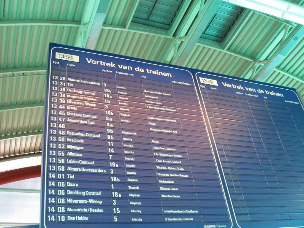Toch wel een nostalgisch gevoel riep dit bij mij op. De witte klapperborden waren iets om trots op te zijn vergeleken met de gele matrixborden bij de zuiderburen. Ik vind dat het design mooi is overgenomen in de monitoren met reisinformatie.