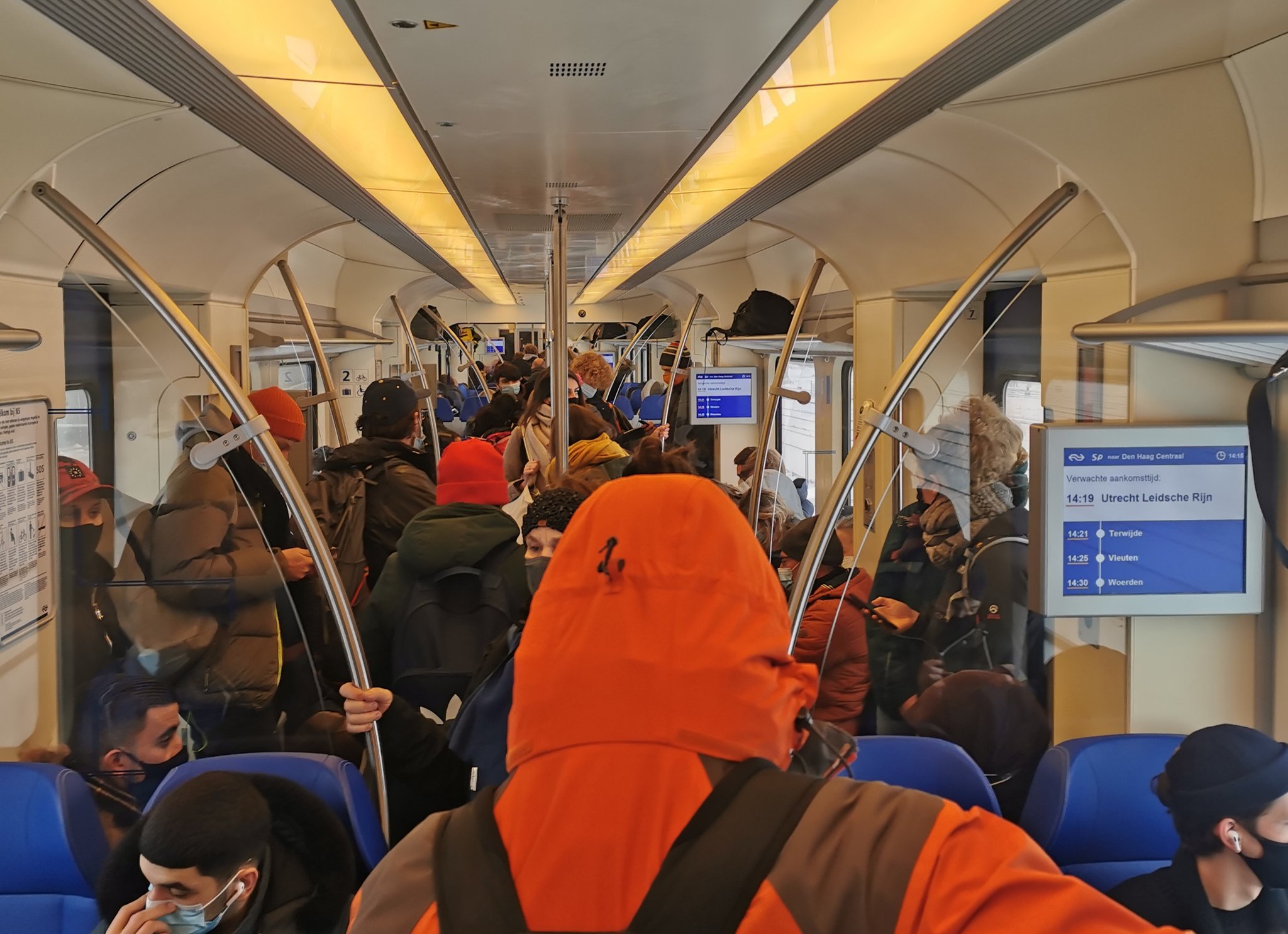 In veel NS-treinen is het erg druk, doordat er vanwege het winterweer slechts mondjesmaat treinen rijden. De vervoerder herhaalt daarom de oproep om alleen de trein te pakken als het noodzakelijk is.