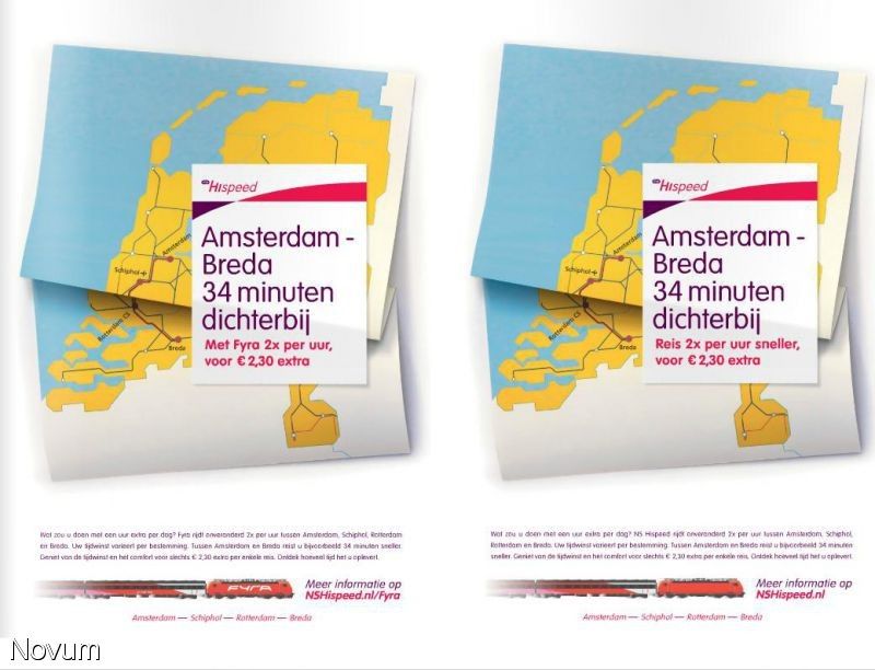 "Het gebruik van de naam Fyra zorgt voor verwarring", legt een woordvoerder van NS uit tegenover persdienst Novum Nieuws. "Mensen lazen overal dat we zijn gestopt met de Fyra en vervolgens zagen ze in onze advertentie dat die toch nog rijdt in Nederland."