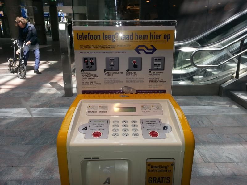 ´´Dit is een gratis service aan reizigers die een even snel een belletje moeten plegen, maar met een lege batterij zitten´´, aldus de woordvoerder tegenover RTV Rijnmond. Zij kunnen hun telefoon achterlaten in een beveiligd laatje, waar het wordt opgeladen.