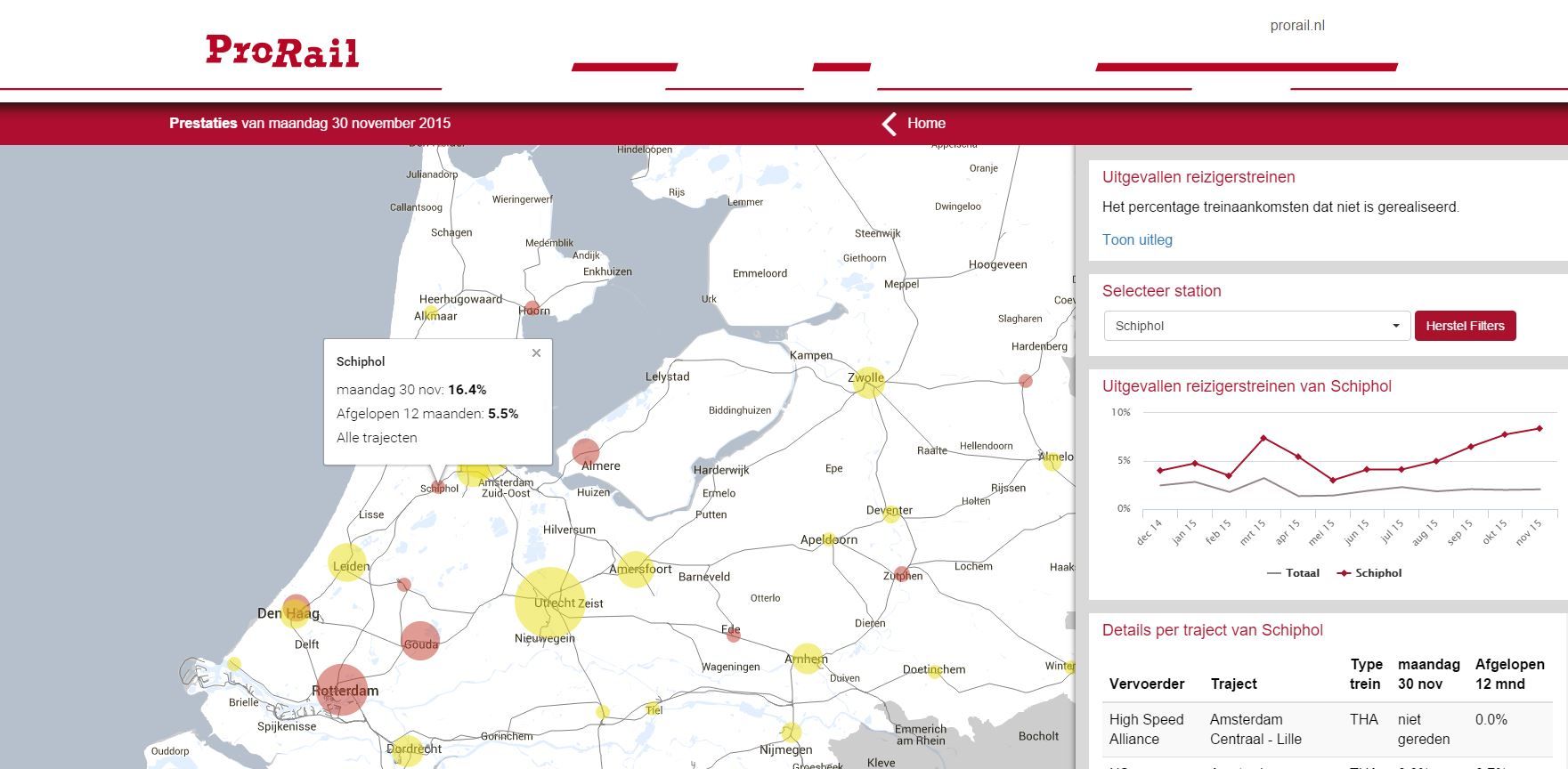 De prestatiecijfers die ProRail sinds dinsdag online heeft gezet zijn voor de stations Schiphol, Ede-Wageningen, Geldermalsen, Tiel en Mariënberg niet compleet. Volgens de cijfers viel in oktober en november maar liefst 8 procent van de treinen van en naar Schiphol uit. In werkelijkheid zijn er naar verwachting minder treinen uitgevallen, maar die cijfers zijn nog niet bekend.