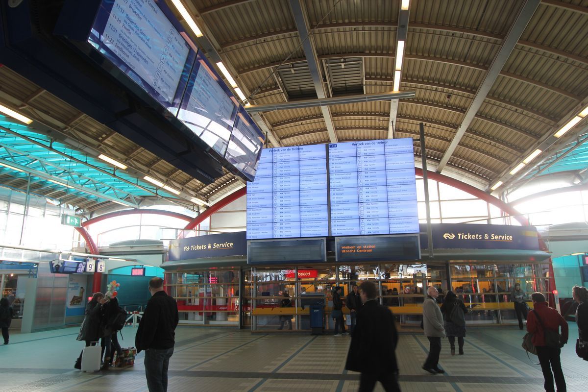 Aan weerskanten van het grote scherm kunnen reizigers informatie aflezen die hen helpt bij het plannen van hun reis. Informatie over treinen aan de ene kant, bussen aan de andere kant. Dat internationale reizigers het bord regelmatig zullen gebruiken betekent echter niet dat de reizigersinformatie in meer talen beschikbaar komt. Volgens NS zijn de plaatsnamen, tijden en symbolen duidelijk genoeg voor iedereen.