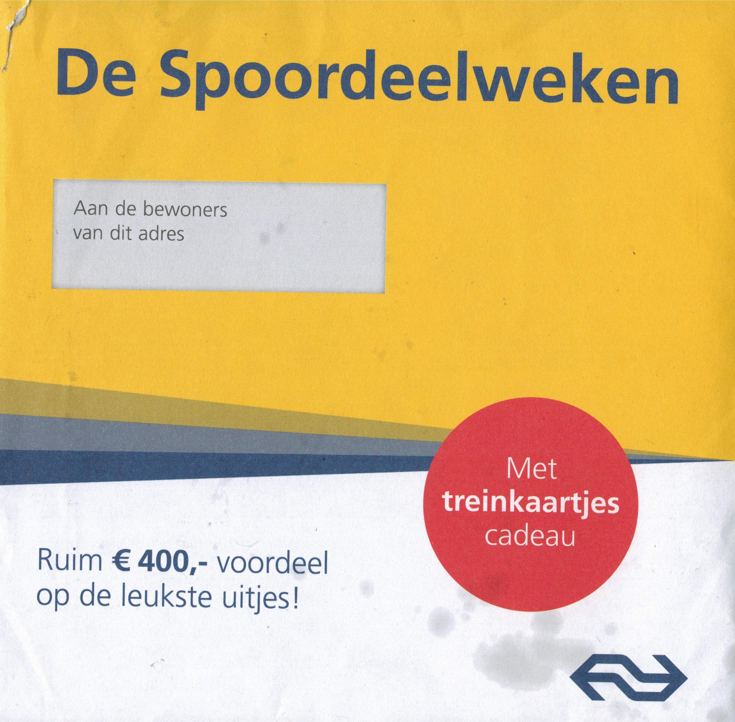 In de herfst organiseert NS weer de Spoordeelweken. In bepaalde regio´s krijgen huishoudens een boekje door de bus met 24 aanbiedingen voor de trein. Daaronder bevind zich ook een gratis meereiskaart voor twee dagen en twee keer een overgangsbewijs van de 2e klas naar de 1e klas. Wie het boekje niet ontvangen heeft, kan het alsnog online aanvragen (op = op).
