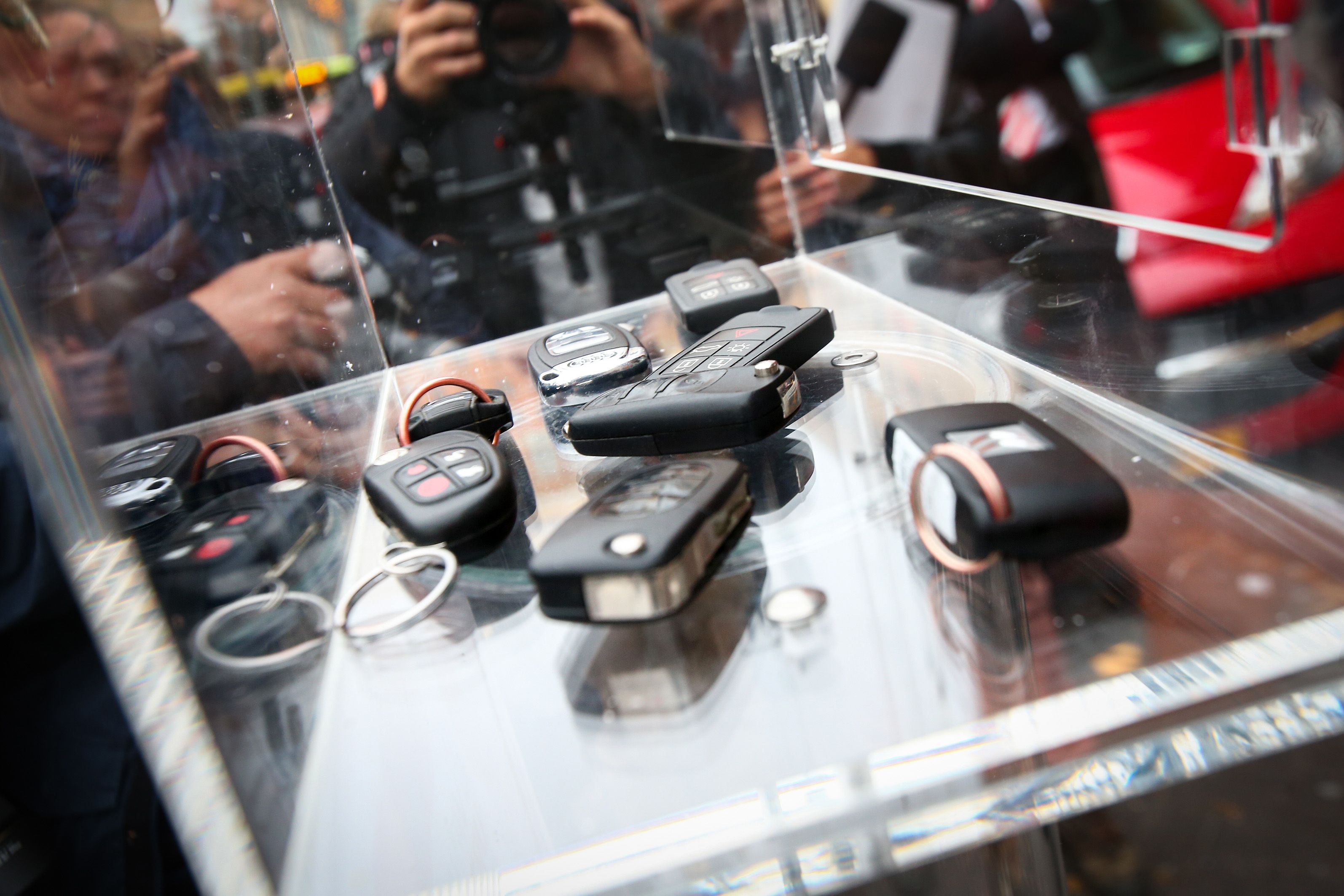 Tien bestuurders van Nederlandse bedrijven zijn vandaag de uitdaging aangegaan om tien dagen de eigen auto te laten staan. Vanochtend leverden zij hun autosleutels in bij burgemeester Bolsius van Amersfoort en Marjan Minnesma, directeur van Urgenda, die deze achter slot en grendel opborgen.