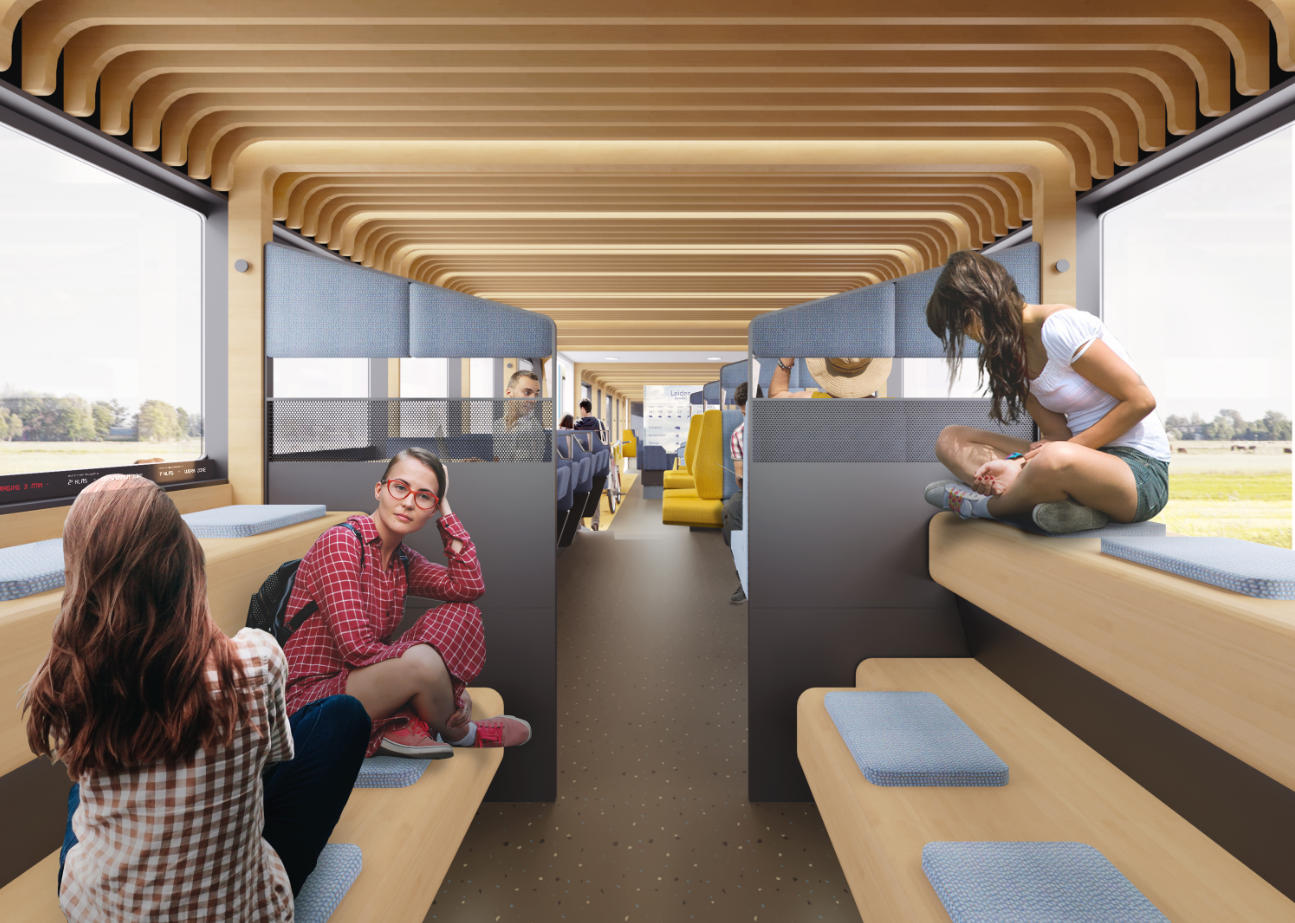 De huidige treinen bestaan vrijwel volledig uit stoelen. Op de balkons zijn er klapzittingen en moderne treinen hebben wellicht nog loungebanken- maar meer dan dat is er meestal niet. Dat gaat in de toekomst veranderen. “De trein van de toekomst is geen huls gevuld met stoelen, maar een totaalconcept dat beter aansluit bij de verschillende types reizigers”, zegt Joost van der Made, hoofd Conceptontwikkeling bij NS. Samen met architectenbureau Mecanoo en projectinrichter Gispen heeft het spoorbedrijf een eerste opzet gemaakt hoe het treininterieur in de toekomst er uit gaat zien.