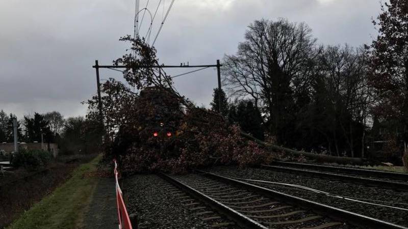 Tussen Doetinchem en Terborg kwam een boom vast te zitten onder de trein, en tussen Geldrop en Weert kwam het treinverkeer stil te liggen toen een trein een boom raakte die op de bovenleiding was gevallen. Ook op andere plekken in Noord-Brabant en Gelderland zorgden omgevallen bomen voor stremmingen van het treinverkeer, meldt spoorbeheerder ProRail.