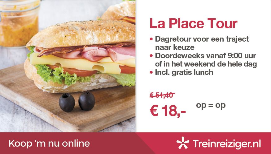 Ook in september kun je weer voordelig met de trein dankzij de La Place Tour. Dit treinkaartje is bovendien tijdens de avondspits geldig. Interessant is ook dat een (eenvoudige) lunch bij La Place inbegrepen is. De treinkaartjes zijn te koop in september en de reis moet plaatsvinden in september of oktober.