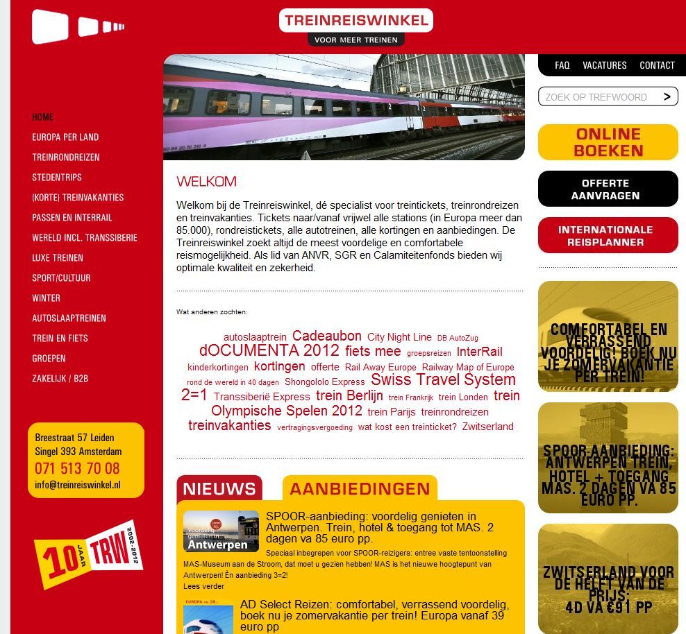 Vrijdag precies tien jaar geleden begon de Treinreiswinkel. Inmiddels werken er veertig mensen, en is de naam een begrip geworden voor internationale treinreizigers. Als het aan directeur Helmut Brall ligt, gaat in de toekomst vijfentwintig procent van de reizigers per trein op vakantie. Dat betoogde hij tijdens een minisymposium dinsdag ter ere van het tienjarig bestaan.