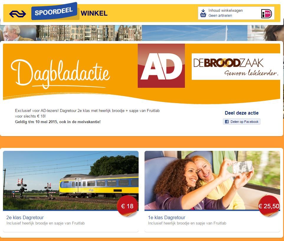 Deze treinaanbieding wordt verkocht via de Spoordeelwinkel en is eigenlijk speciaal gericht op lezers van het Algemeen Dagblad.
