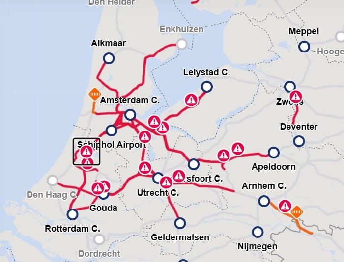 Update – Treinverkeer rond Amsterdam en Schiphol stilgelegd