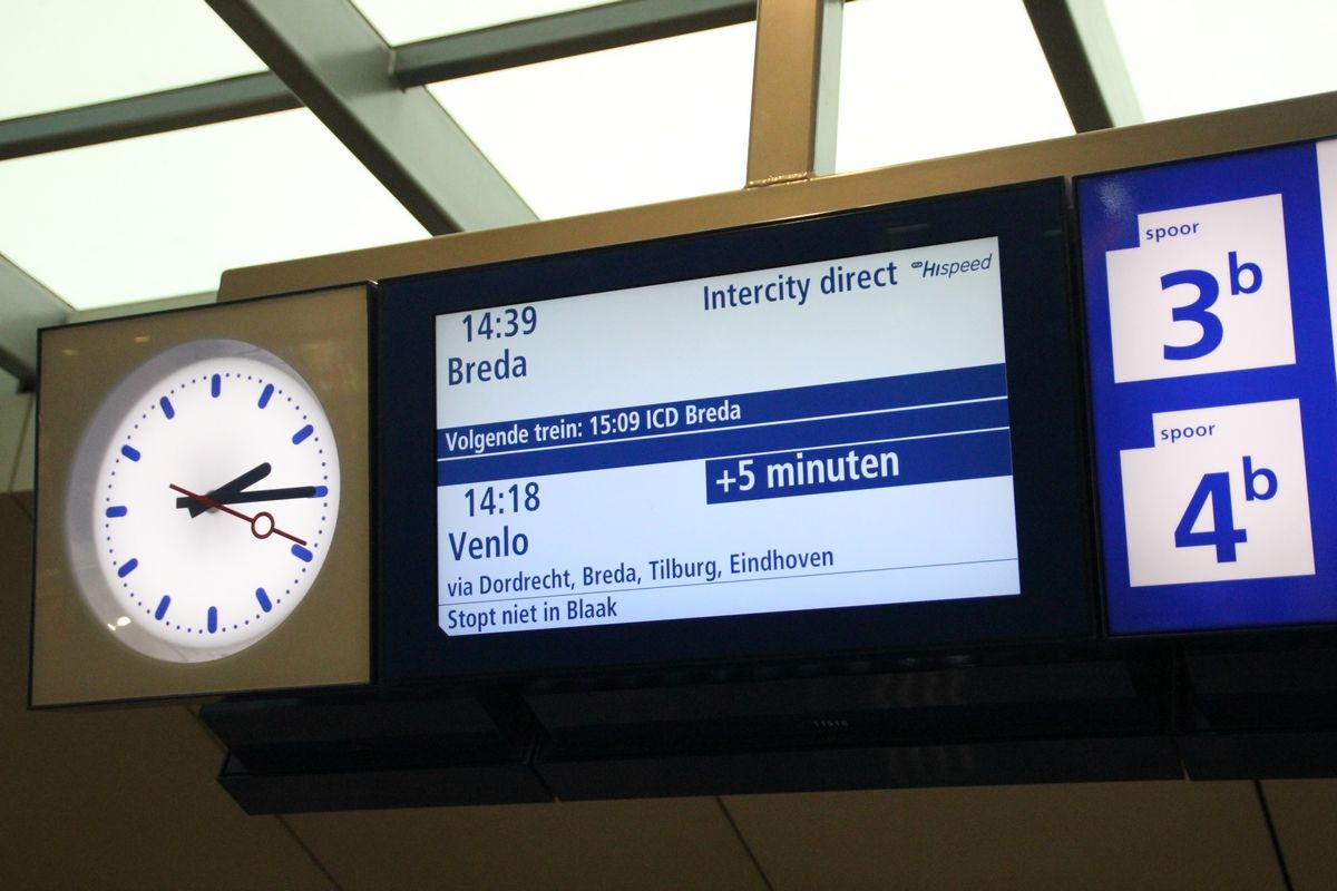 NS hoopt dat zowel de problemen rond Schiphol als de problemen rond Leiden rond 19:00 uur verholpen zijn.