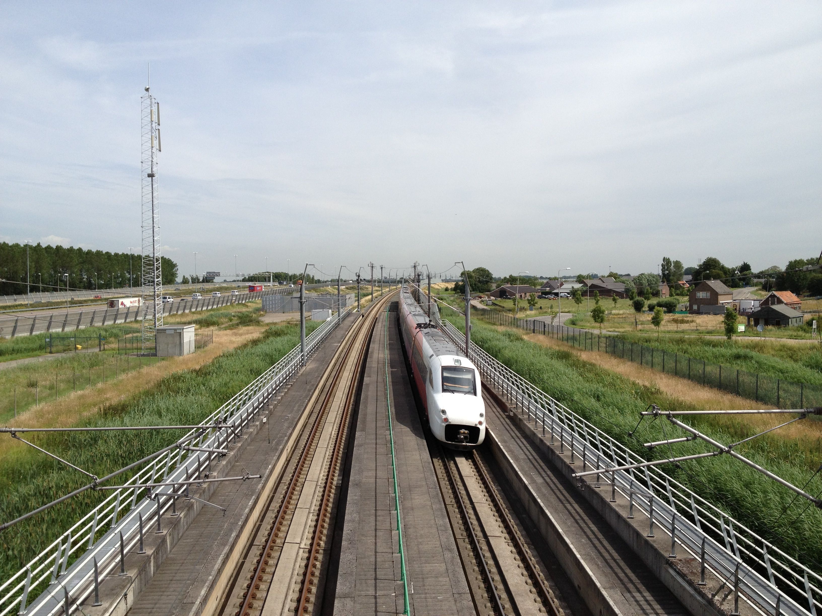 Op de foto is de V250 te zien tijdens een testrit op de HSL ter hoogte van Leiderdorp.