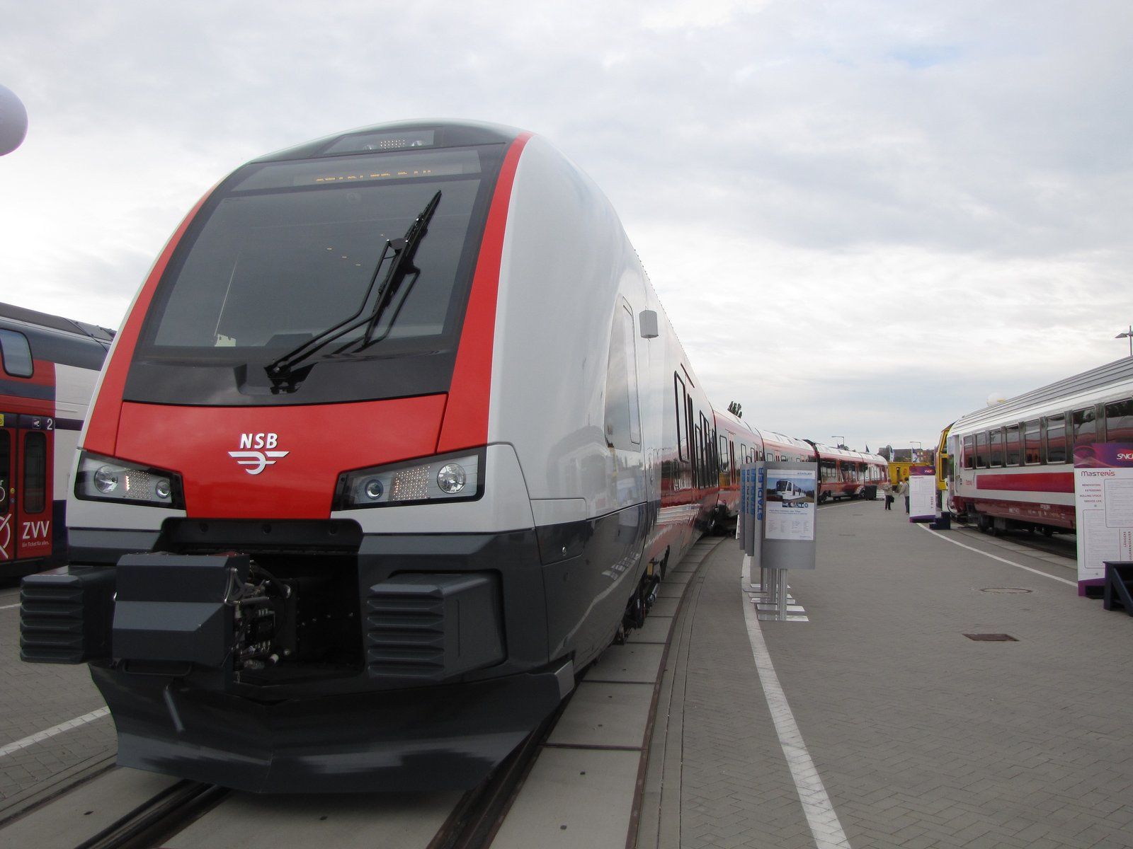 Foto: Een Stadler FLIRT-trein voor Noorwegen. Deze treinen hebben brede deuren en kunnen een snelheid van 200 kilometer per uur halen. Stadler is één van de kanshebbers.